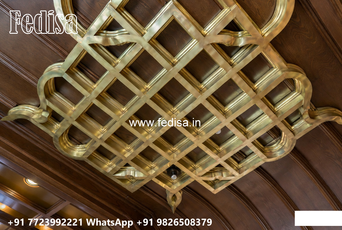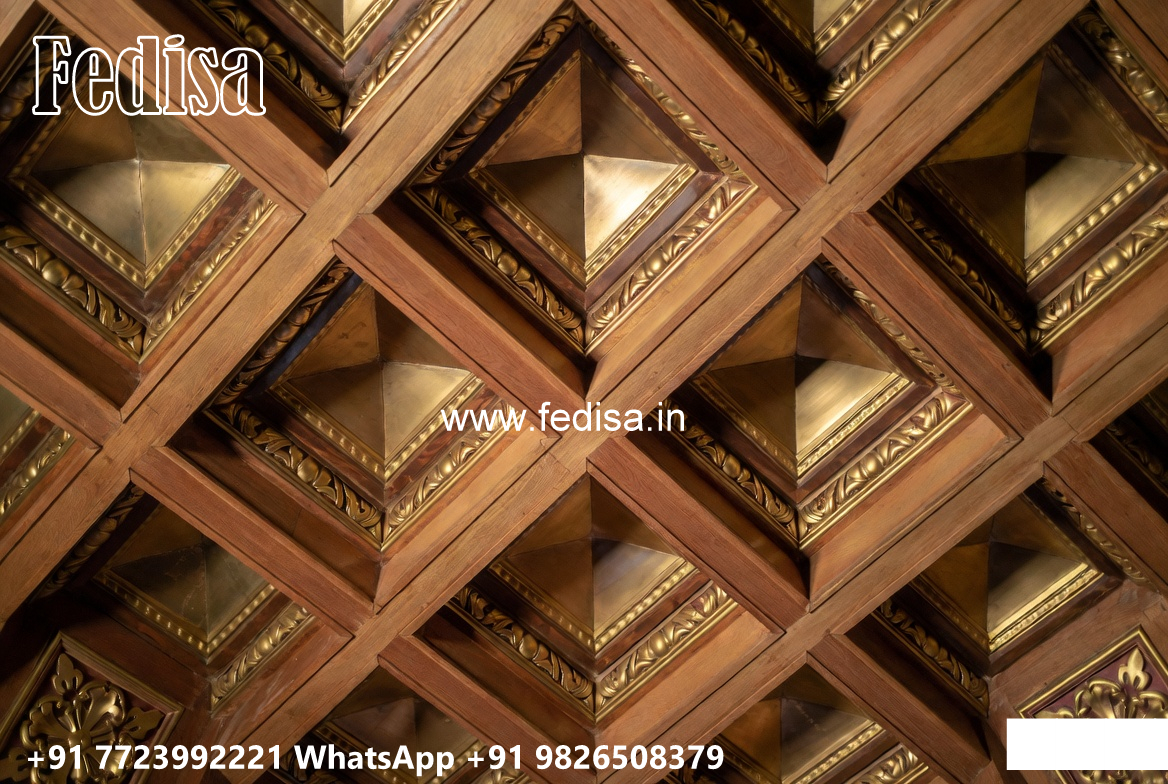 Wooden Classic Ceiling Design L Shape Hall Ceiling Design No-10475