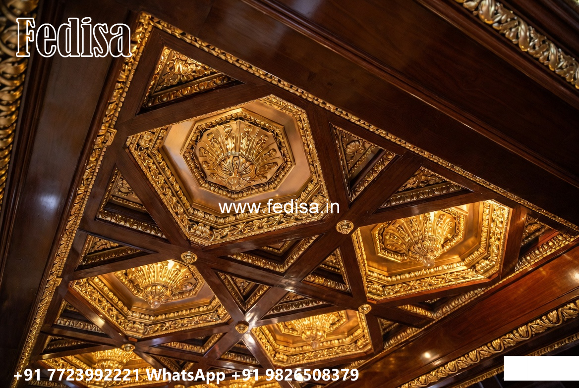 Wooden Classic Ceiling Design L Type Hall Ceiling Design No-7632