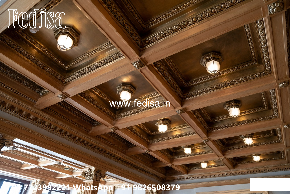 Wooden Classic Ceiling Design Plus Minus Bedroom Design No-12686