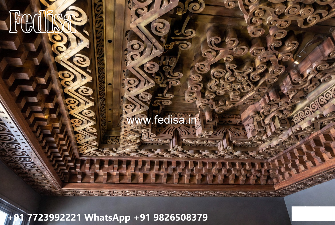 Wooden Classic Ceiling Design Pop Corner Design For Hall No-7329