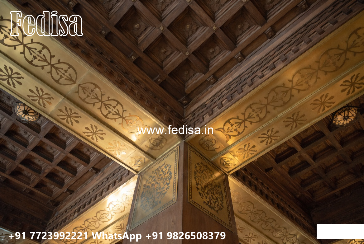 Wooden Classic Ceiling Design Simple False Ceiling Design For Hall With Two Fans No-13969