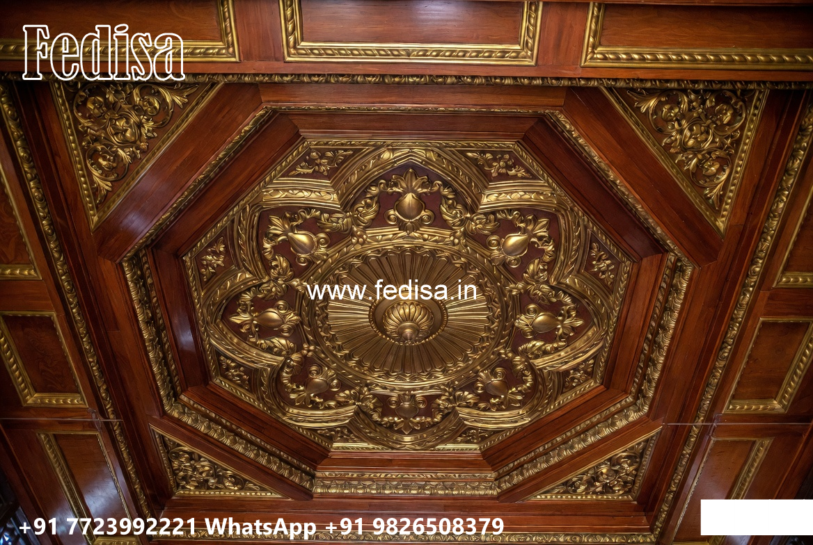 Wooden Classic Ceiling Design Tv Showcase Pop Design No-11807