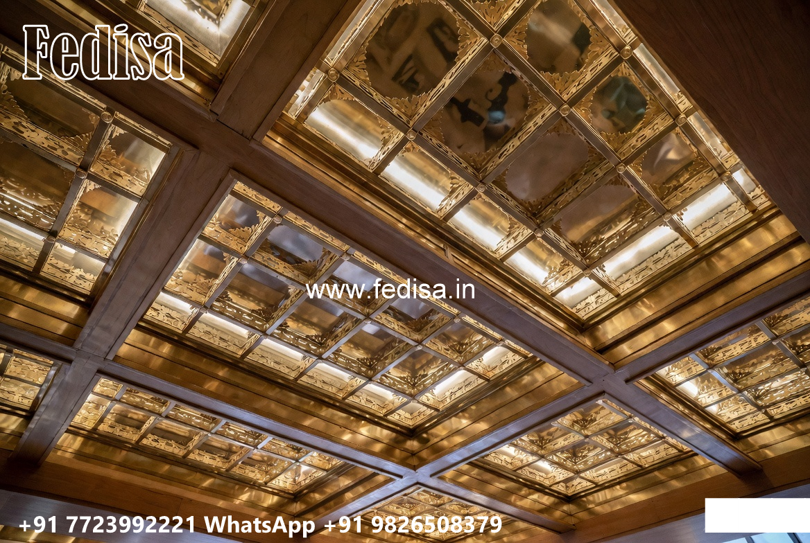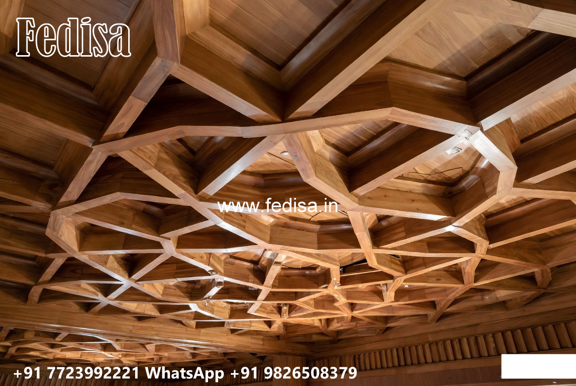 Wooden Classic Ceiling Design Two Fan Pop Design Plus Minus No-6838
